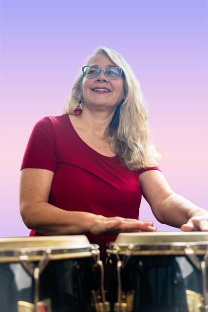 Als Percussionistin im Jazz, in der Latin- oder auch Weltmusik fasst sie zunehmend Fuß und steckt mit ihrer Spielfreude alle auf und vor der Bühne an.